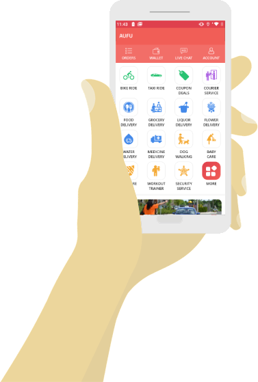 Using the AUFU app, you will access multiple services in a single app like a bike ride, taxi booking, food ordering, courier delivery, and other on-demand services.