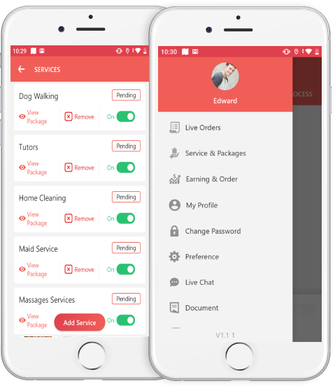 You can view all completed, pending, running and canceled order requests with all details. You can view a new order request and manage it to access/reject the option. You can manage your profile status online/offline.